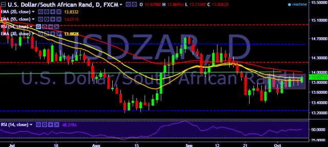 We prefer to go short on USD/ZAR only below 13.87, stop loss at 14.00 and target of 13.57.