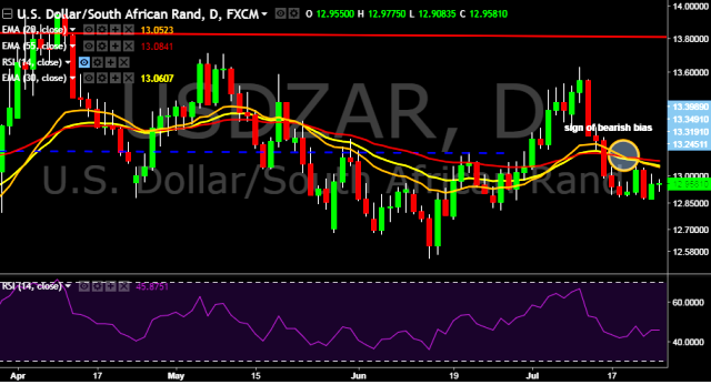 We prefer to take short position in USD/ZAR only below 12.87, stop loss 13.05 and target of 12.70.