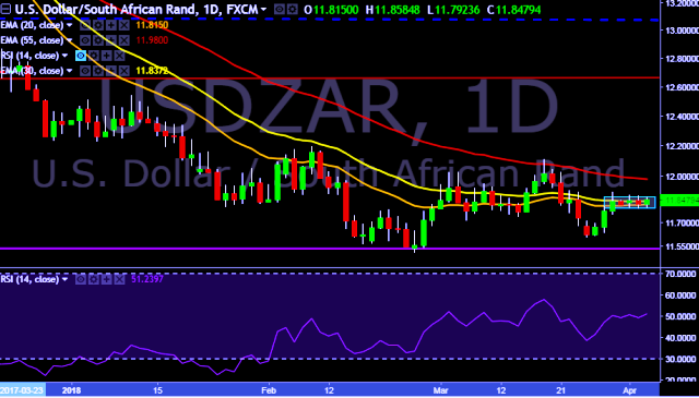 We prefer to take long position on USD/ZAR only above 11.92, stop loss at 11.80 and target of 12.10.