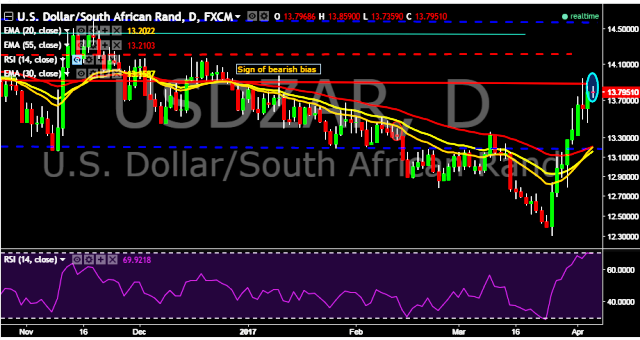 We prefer to take long position in USD/ZAR around 13.75, stop loss at 13.60 and target of 13.96/14.14.