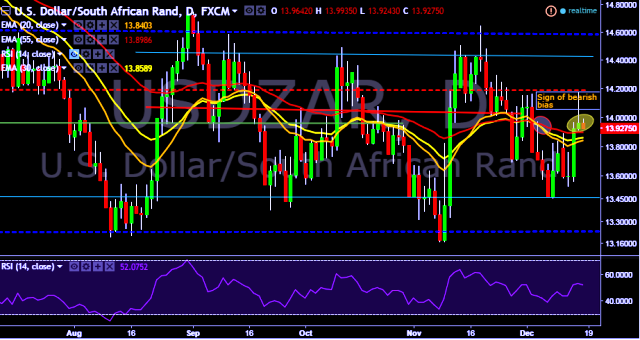 We prefer to take short position in USD/ZAR around 13.92, stop loss at 14.08 and target of 13.70.