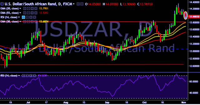 - USD/ZAR is currently trading around 13.97 levels.