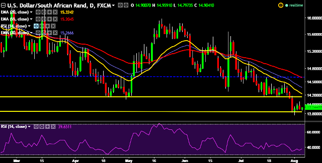 We prefer to take short position in USD/ZAR around 13.98, stop loss 14.08 and target 13.75/13.52.