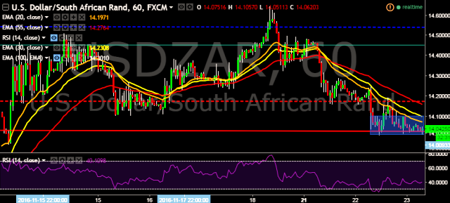 We prefer to go short on USD/ZAR only below 13.96, stop loss 14.16 and target of 13.70.