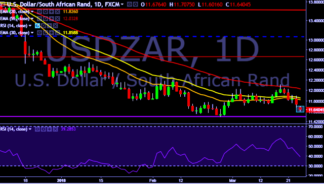 We prefer to take short position on USD/ZAR around 11.65, stop loss at 11.92 and target of 11.24.