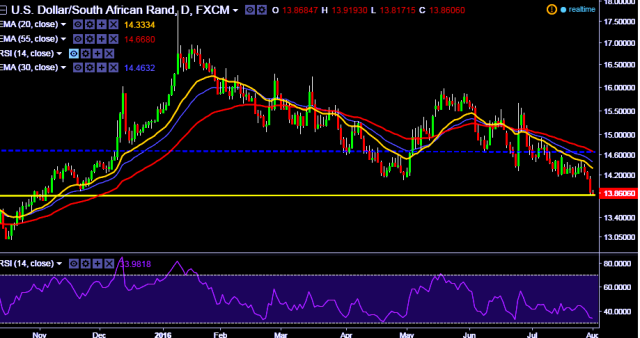 We prefer to take short position in USD/ZAR only below 13.81, stop loss 13.98 and target 13.72/13.26.