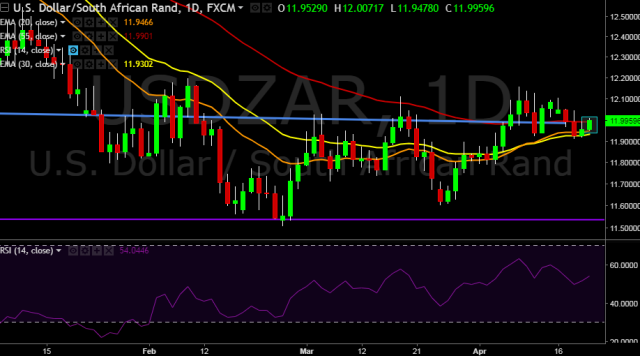 We prefer to take long position on USD/ZAR around 11.98, stop loss at 11.90 and target of 12.21.