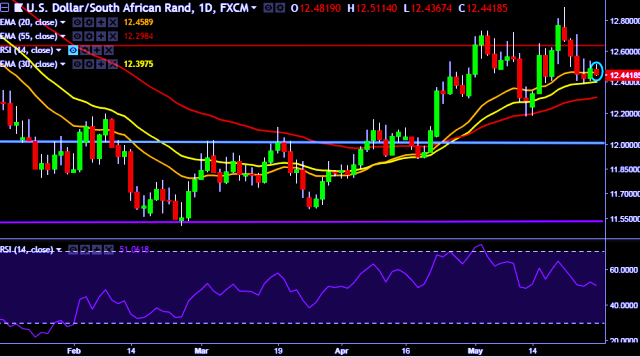 - USD/ZAR is currently trading around 12.45 levels.