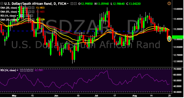 - USD/ZAR is currently trading around 13.04 levels.