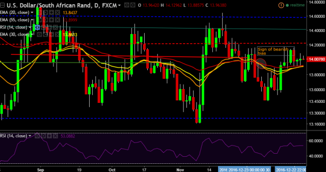 We prefer to go short on USD/ZAR around 14.01, stop loss 14.09 and target of 13.70/13.57.