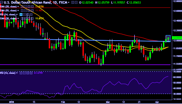 - USD/ZAR is currently trading around 12.00 levels.