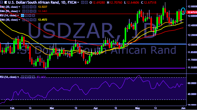 We prefer to take short position on USD/ZAR around 12.67, stop loss at 12.75 and target of 12.40.