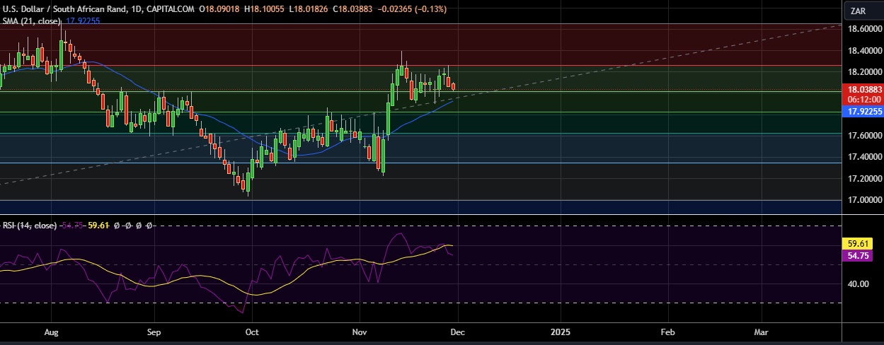 • Immediate resistance is located at 18.135 (Nov 22nd high), any close above will push the pair towards 18.254 (23.6fib).