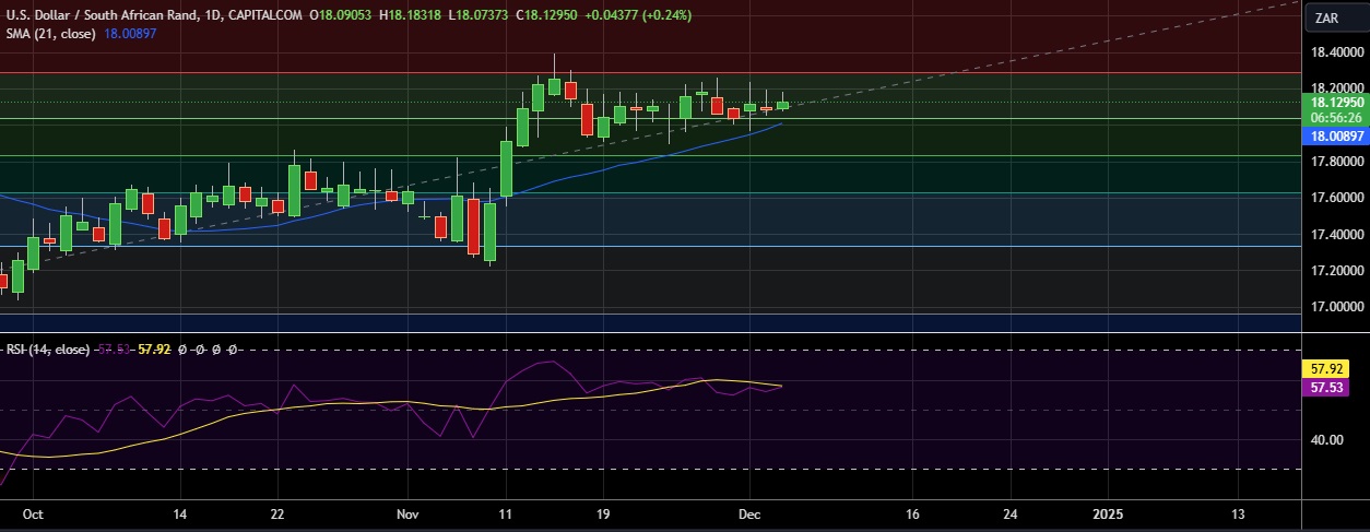 • Immediate resistance is located at 18.283 (23.6%fib), any close above will push the pair towards 18.390(Nov 14th high).