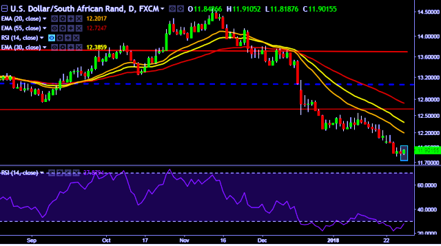 - USD/ZAR is currently trading around 11.91 levels.