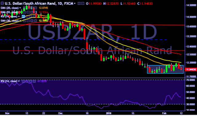 We prefer to take short position on USD/ZAR around 12.00, stop loss at 12.20 and target of 11.82/11.73.