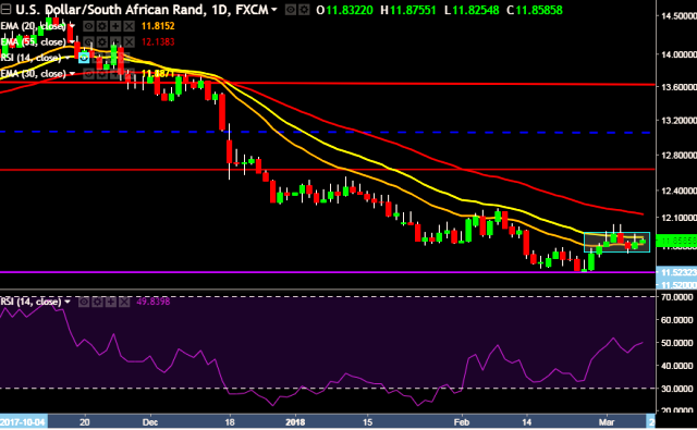 - USD/ZAR is currently trading around 11.85 levels.