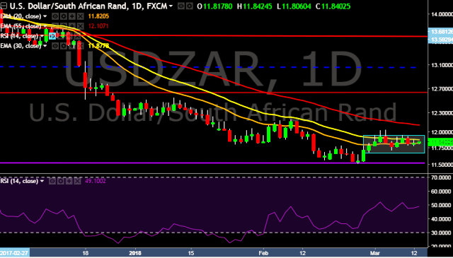 We prefer to take long position on USD/ZAR only below 11.70, stop loss at 11.95 and target of 11.53/11.24.