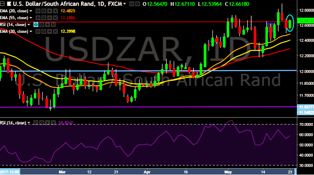 - USD/ZAR is currently trading around 12.65 levels.
