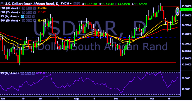 We prefer to take long position on USD/ZAR around 13.70, stop loss 13.46 and target of 13.95.
