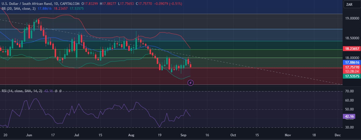 • USD/ZAR declined on Thursday as dollar weakened after U.S. jobs data showed a softening labour market.
