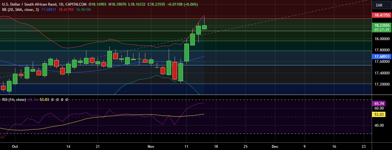 •At GMT 14:30, the pair was trading up 0.07 percent at 18.237