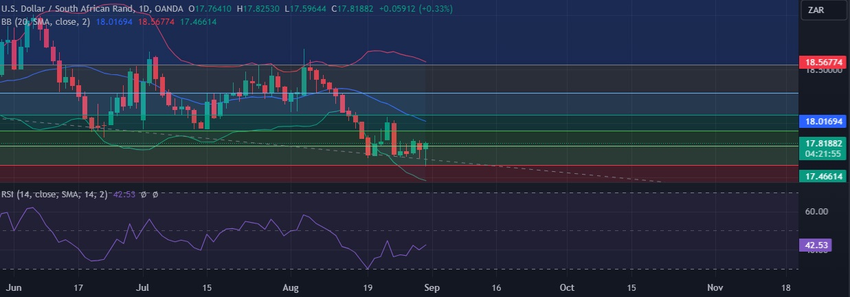 • Strong support is seen at 17.792 (38.2%fib) and break below could take the pair towards 17.6100 (23.6%fib).