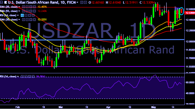 We prefer to take short position on USD/ZAR around 12.55, stop loss at 12.62 and target of 12.42/12.20.