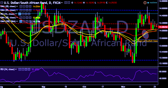 We prefer to go short on USD/ZAR only below 14.01, stop loss 14.20 and target of 13.70.
