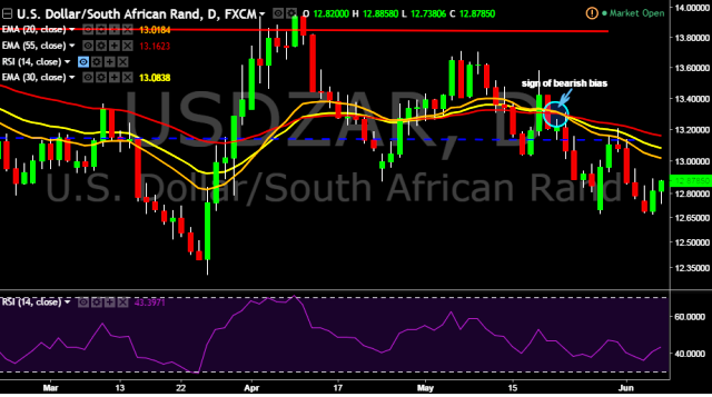 We prefer to take short position in USD/ZAR around 12.92, stop loss at 13.14 and target of 12.67/12.48.