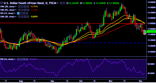 - USD/ZAR is currently trading around 13.50 levels.