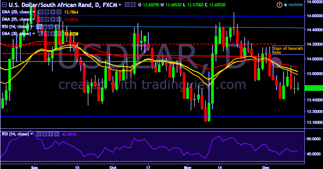 We prefer to take short position in USD/ZAR only below 13.53, stop loss at 13.76 and target of 13.31.