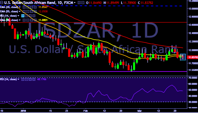 We prefer to take long position on USD/ZAR only above 11.92, stop loss at 11.70 and target of 12.20.
