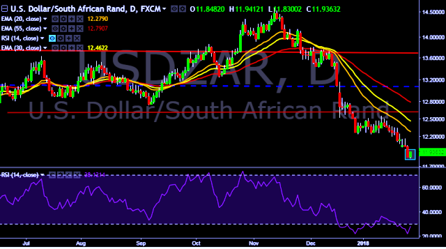 We prefer to take short position in USD/ZAR around 11.98, stop loss at 12.25 and target of 11.73 mark.