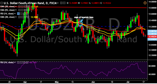 We prefer to take short position in USD/ZAR only below 12.88, stop loss 13.05 and target of 12.82.