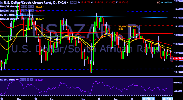 We prefer to take short position in USD/ZAR around 13.47, stop loss at 13.65 and taget of 13.40/13.32.
