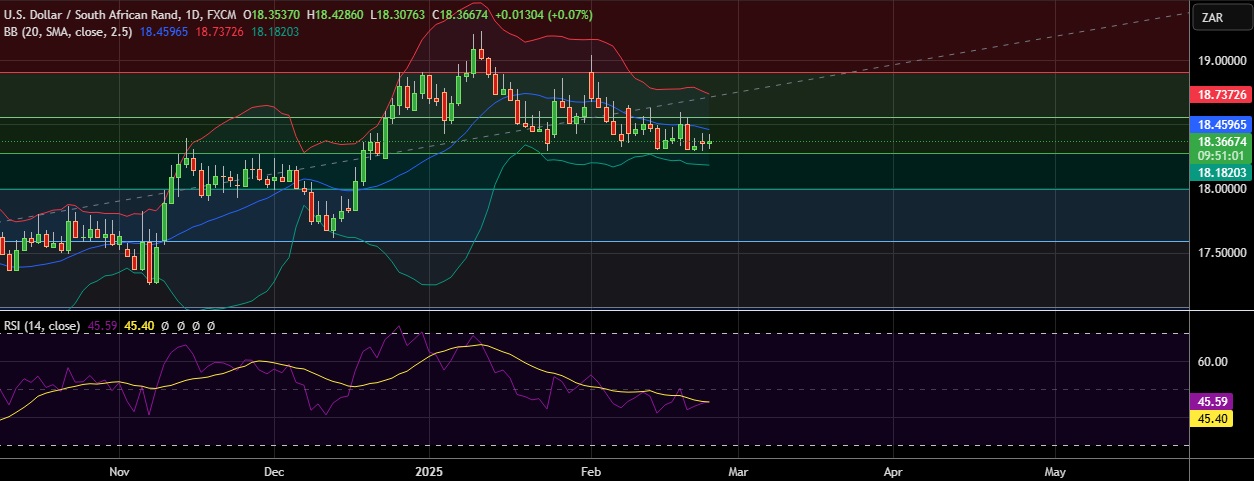• USD/ZAR gained briefly on Tuesday but lost momentum as fears of a global trade war prompted caution among investors.