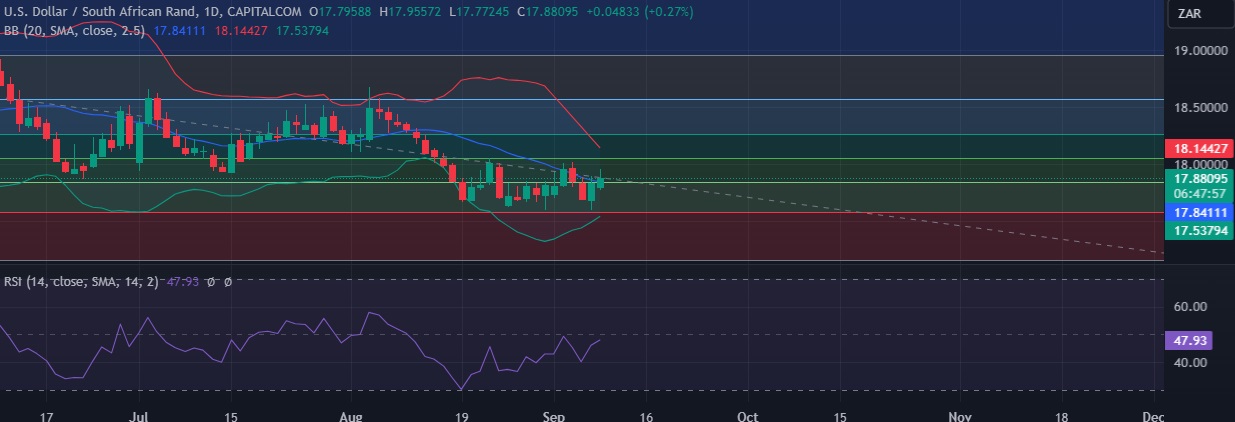 At GMT 14:09, the pair was trading up 0.26 percent at 17.880 after reaching daily high at 17.957.