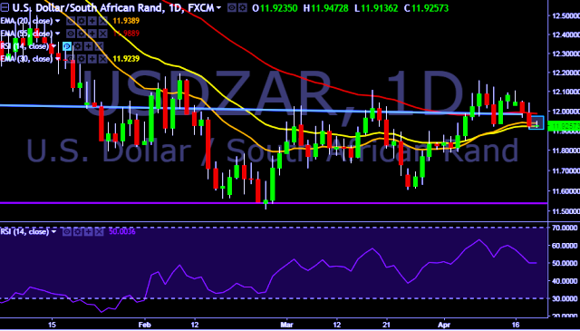 We prefer to take short position on USD/ZAR around 11.94, stop loss at 12.05 and target of 11.70.