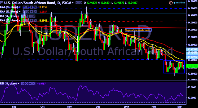 We prefer to take long position in USD/ZAR around 13.02, stop loss at 12.95 and target of 13.17.