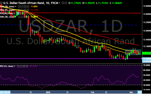 We prefer to take short position on USD/ZAR only below 11.70, stop loss at 11.96 and target of 11.53/11.24.