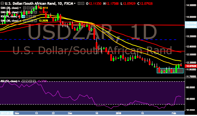 We prefer to take short position on USD/ZAR only below 11.98, stop loss at 12.15 and target of 11.82.