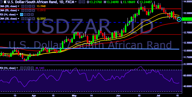 We prefer to take short position on USD/ZAR only below 13.16, stop loss 13.40 and target of 12.99.
