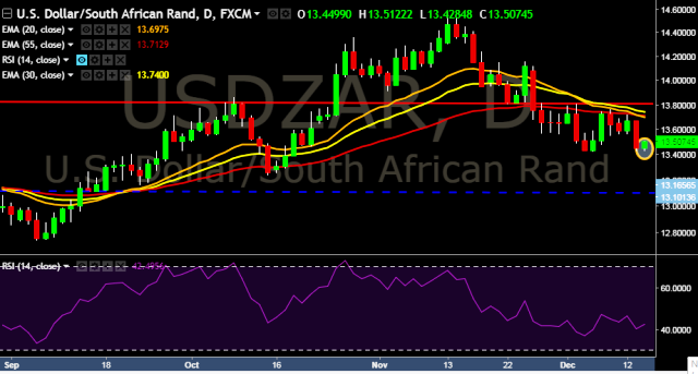 We prefer to take short position on USD/ZAR only below 13.42, stop loss 13.57 and target of 13.20/13.01 mark.