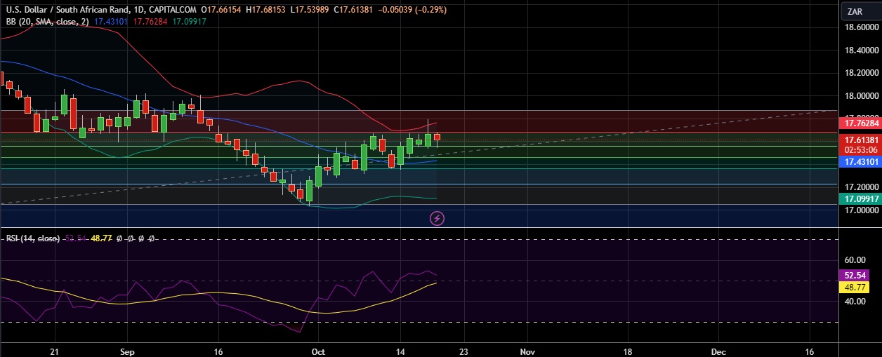 •At GMT 18:04, the pair was trading down 0.29 percent at 17.612,retreating from daily high17.676