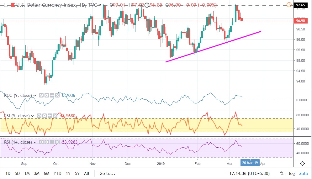 - Despite a sharp rise last week, the USD bulls are struggling to find the mojo back this week. Though European Central Bank’s (ECB) dovish commentary pushed the USD to retest key resistance around 97.65 area.