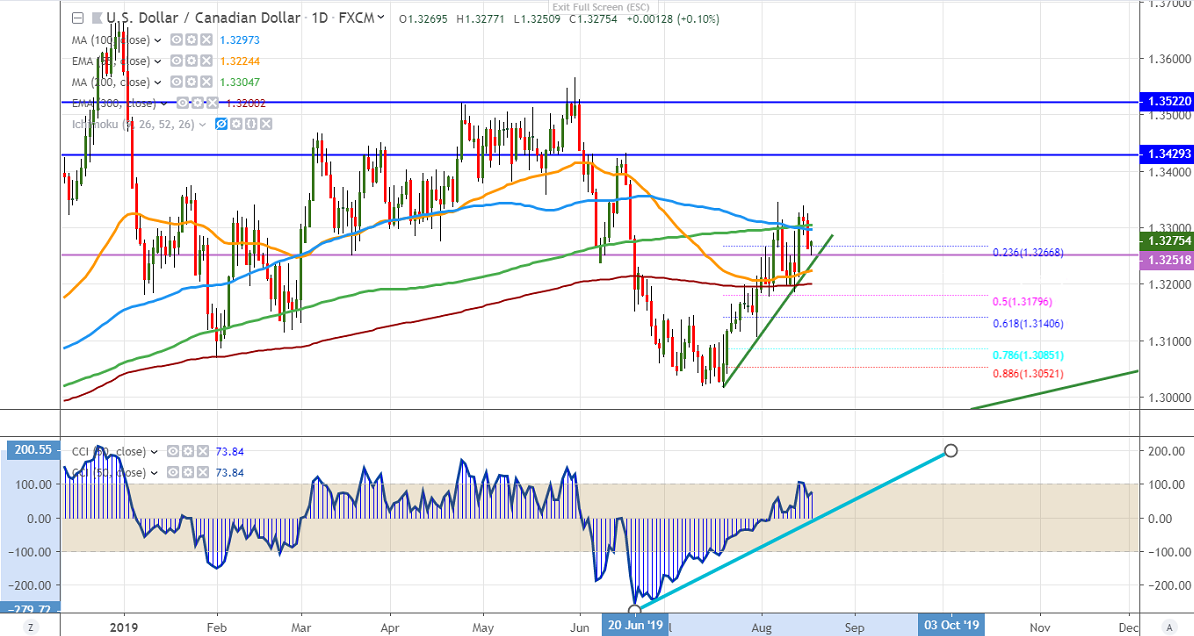 USDCAD is trading lower for 2nd consecutive day and lost nearly 80 pips from high of 1.33392. The decline was mainly due to a slight recovery in crude oil prices. WTI crude oil has formed bottom around $50.50 and jumped nearly $7 on easing the US-China trade war and stimulus by major central banks will improve the oil demand. It hits a low of 1.32509 and is currently trading around 1.32782.