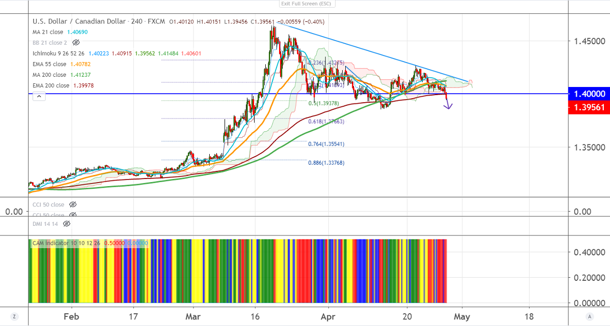 USDCAD has once again declined after showing a minor jump to 1.40730 levels. The pair is trading weak despite sharp sell-off in crude oil price. WTI crude oil lost more than 40% this week due to oversupply, weak demand. The global market is to face a recession in the coming months on account of coronavirus. The oil is facing powerful resistance around $20, any recovery should be used as a selling opportunity.