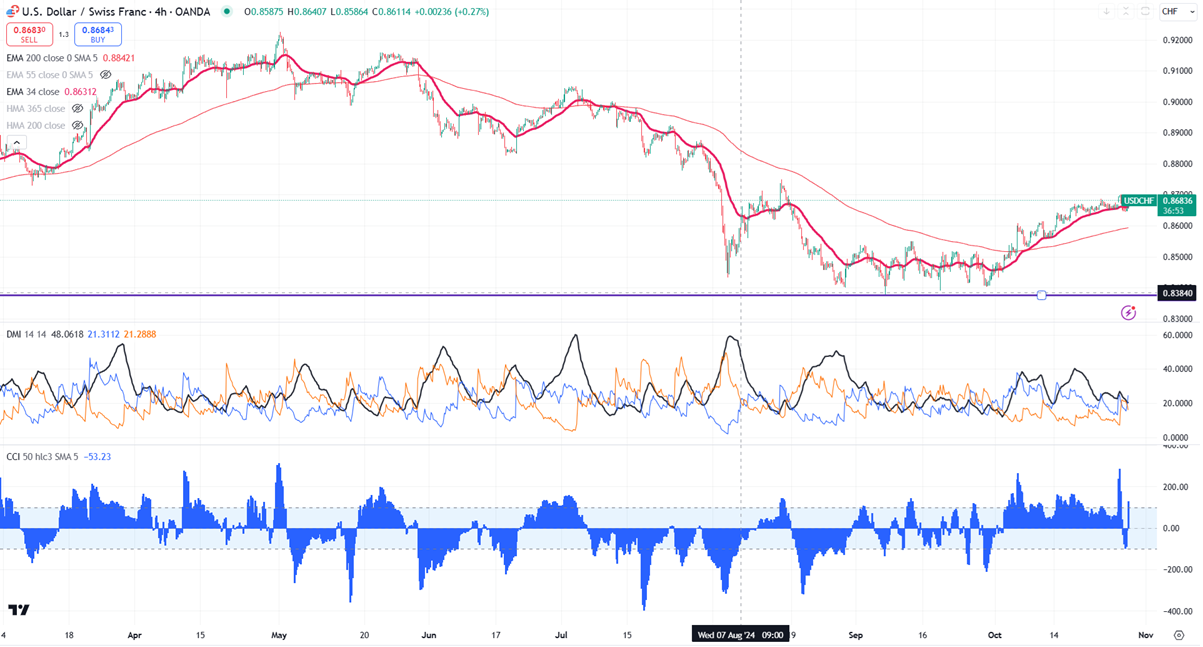 The pair is currently trading above the 34- and 55-EMA on the 4-hour chart.