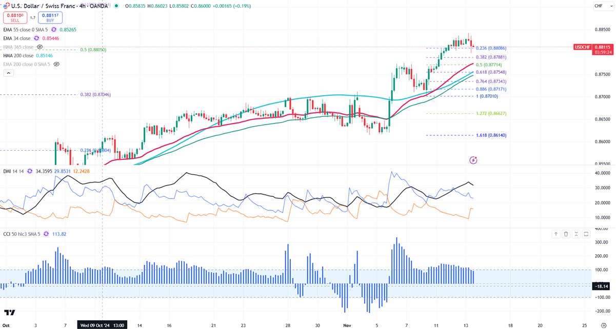 The pair is currently trading above the 34- and 55-EMA on the 4-hour chart.